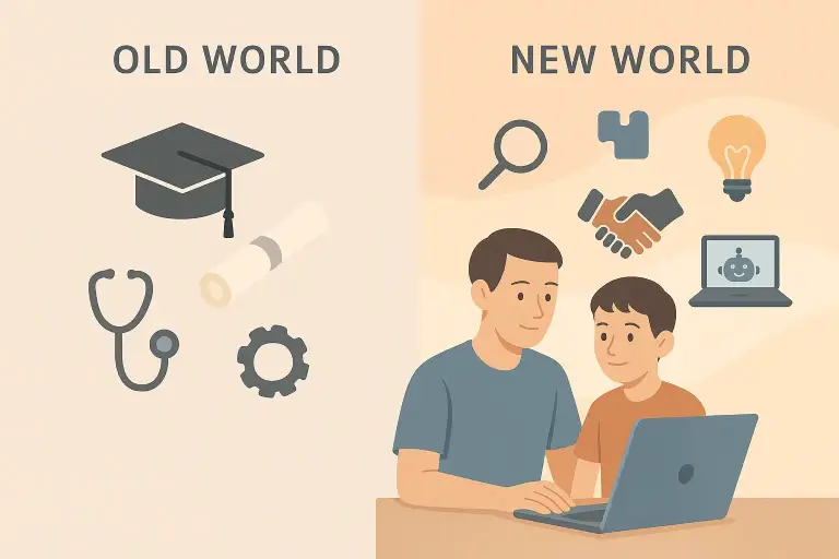 From a parenting angle, here’s how it looks in my head. The skill set I’d like my son to build, beyond grades and even beyond “profession”, includes: